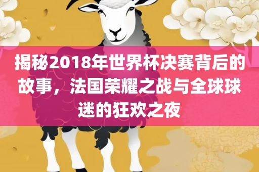 摘要:,,本文揭示了2018年世界杯决赛背后的故事,展现了法国队的荣耀之战和全球球迷的狂欢之夜。在这场激动人心的比赛中,法国队通过精彩的团队合作和坚韧的斗志,最终赢得了冠军。这场决赛不仅成为了足球史上的经典之战,也激发了全球球迷的热情和激情,成为了一个难忘的夜晚。