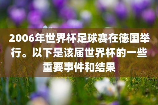2006年世界杯足球赛在德国举行。以下是该届世界杯的一些重要事件和结果