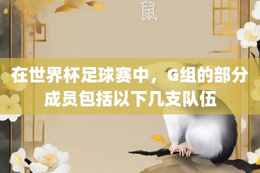 • 转载请注明来自洛阳市法福文化传播有限公司,本文标题:《在世界杯足球赛中,G组的部分成员包括以下几支队伍》