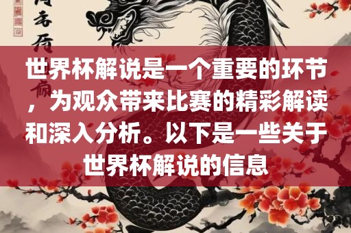世界杯解说是一个重要的环节,为观众带来比赛的精彩解读和深入分析。以下是一些关于世界杯解说的信息