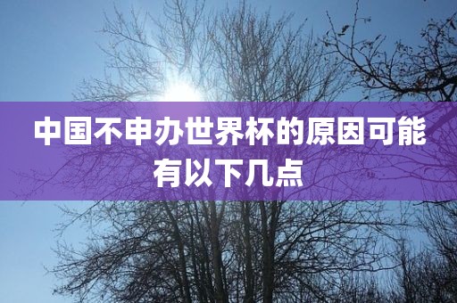 中国目前不申办世界杯可能是基于多方面的考虑和权衡,未来是否申办,还需要根据国家的经济、体育发展以及国际足球形势等多方面因素来综合考虑。