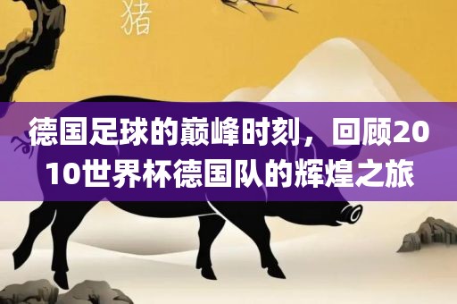 德国足球在世界杯历史上的巅峰时刻,回顾2010年世界杯德国队的辉煌之旅。这支队伍凭借出色的表现和无懈可击的战术执行力,赢得了球迷们的热烈欢呼和尊敬。他们在比赛中展现出卓越的团队合作精神和坚韧不拔的斗志,最终成功夺得冠军。这一时刻成为德国足球历史上的重要里程碑,也为世界足坛留下了难忘的回忆。